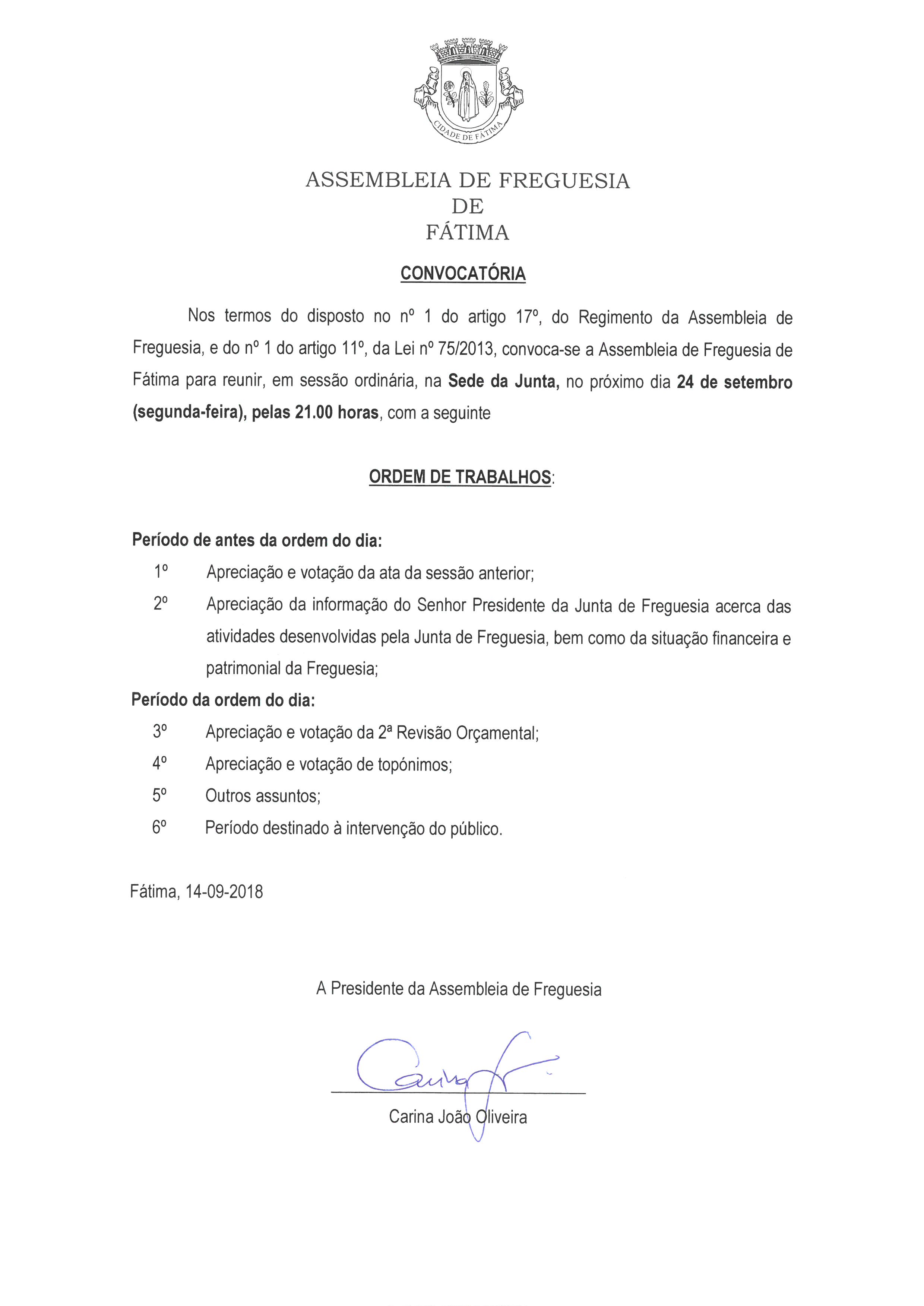 Assembleia de Freguesia extraordinária - 06/05/2019