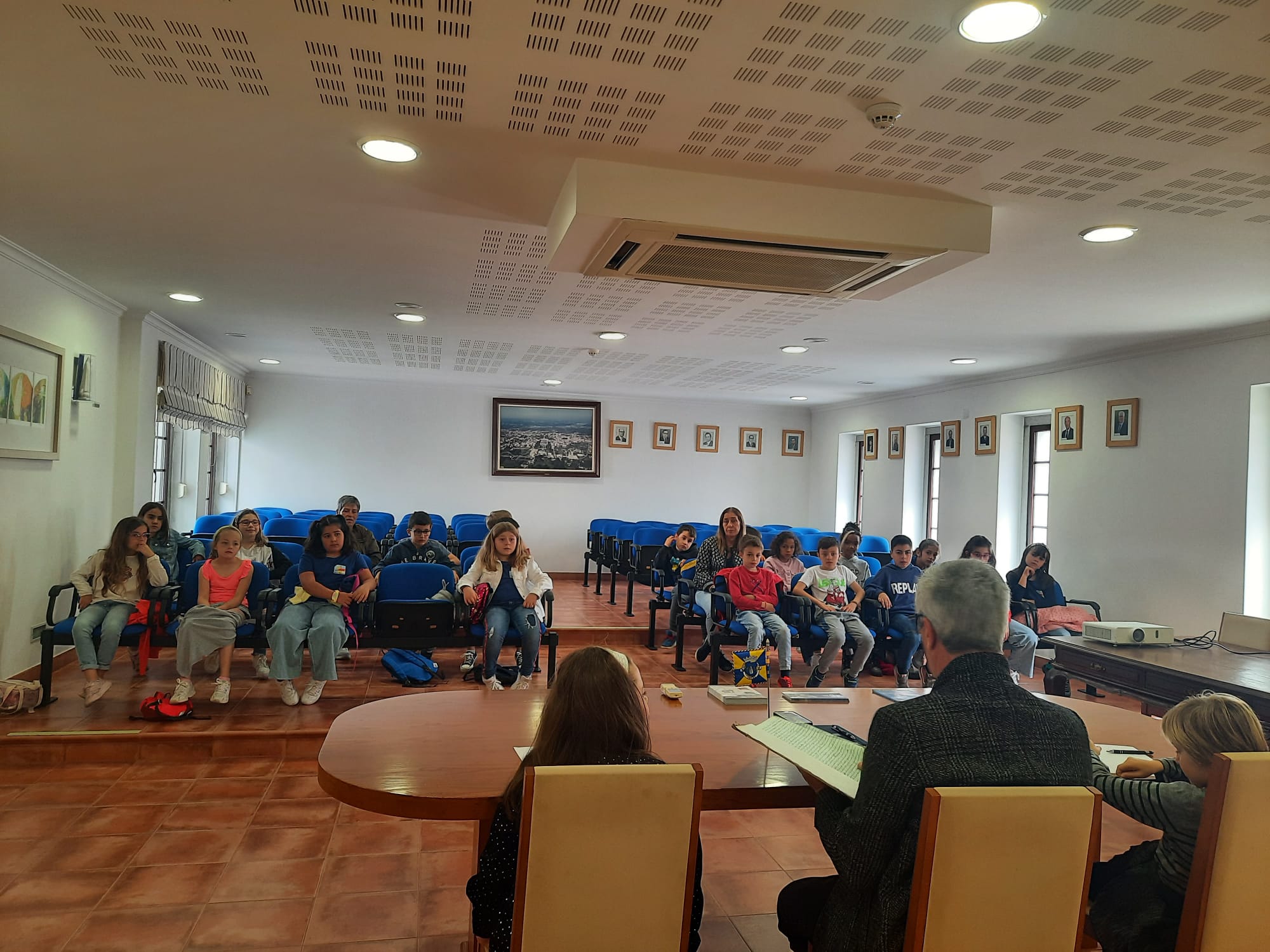 O Presidente da Junta, acompanhado de dois petizes secretários, explicou todo o funcionamento das Autarquias, desde a eleição até à instalação, esclareceu quais as competências da Junta e da Assembleia de Freguesia, contou um pouco da história da freguesia e do concelho e terminou com uma breve exposição sobre a heráldica.