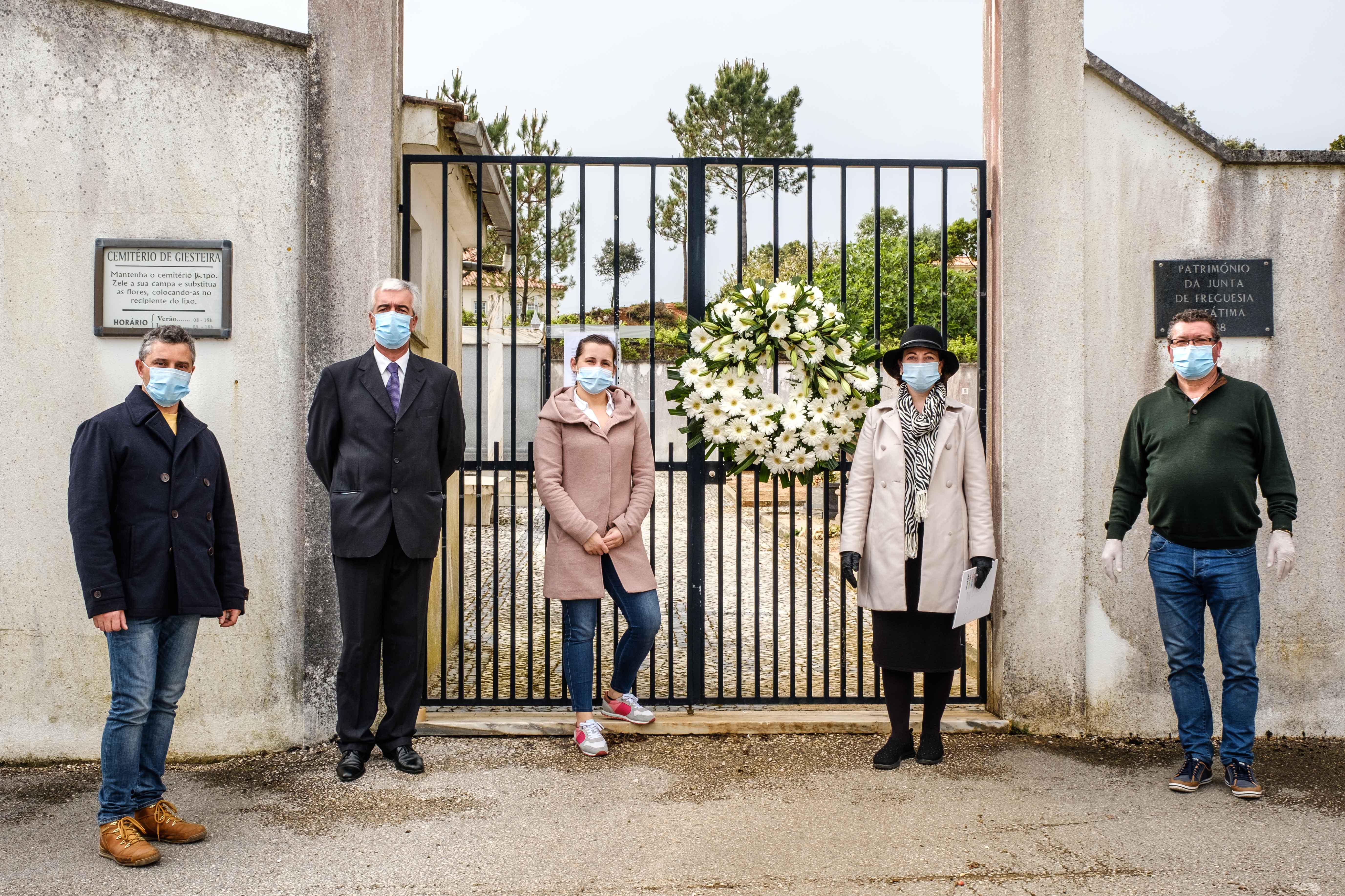 A Presidente da Assembleia e os elementos do Executivo da Junta de Freguesia deslocaram-se hoje aos três Cemitérios de Fátima para prestarem uma homenagem simbólica, colocando uma mensagem junto dos portões e uma coroa de flores.