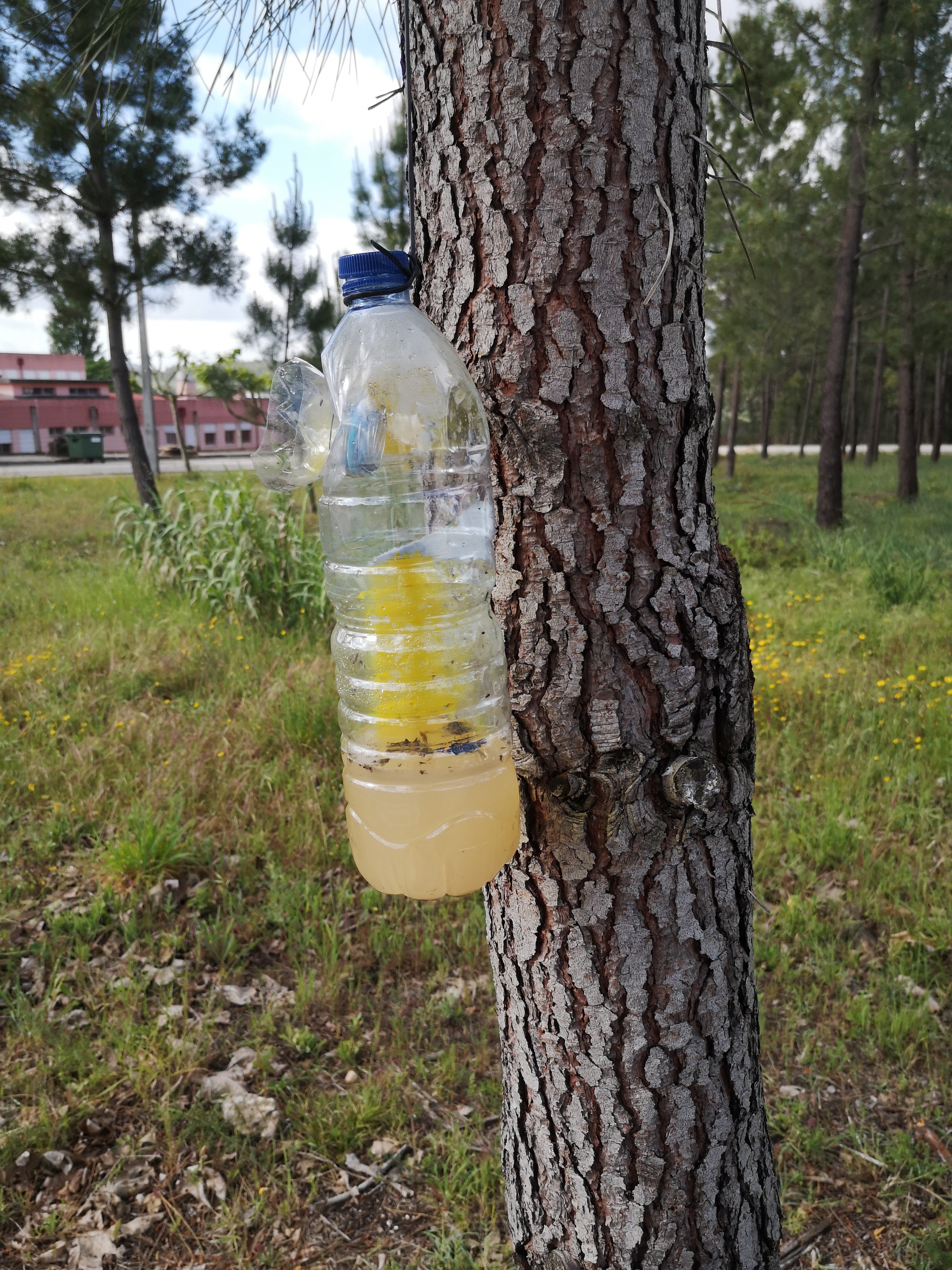 As armadilhas foram construídas a partir de garrafas recicladas, no interior das quais é depositada uma solução açucarada para atrair o inseto invasor, de modo a controlar a proliferação da vespa velutina e proteger outras espécies como a abelha europeia, que produz mel.