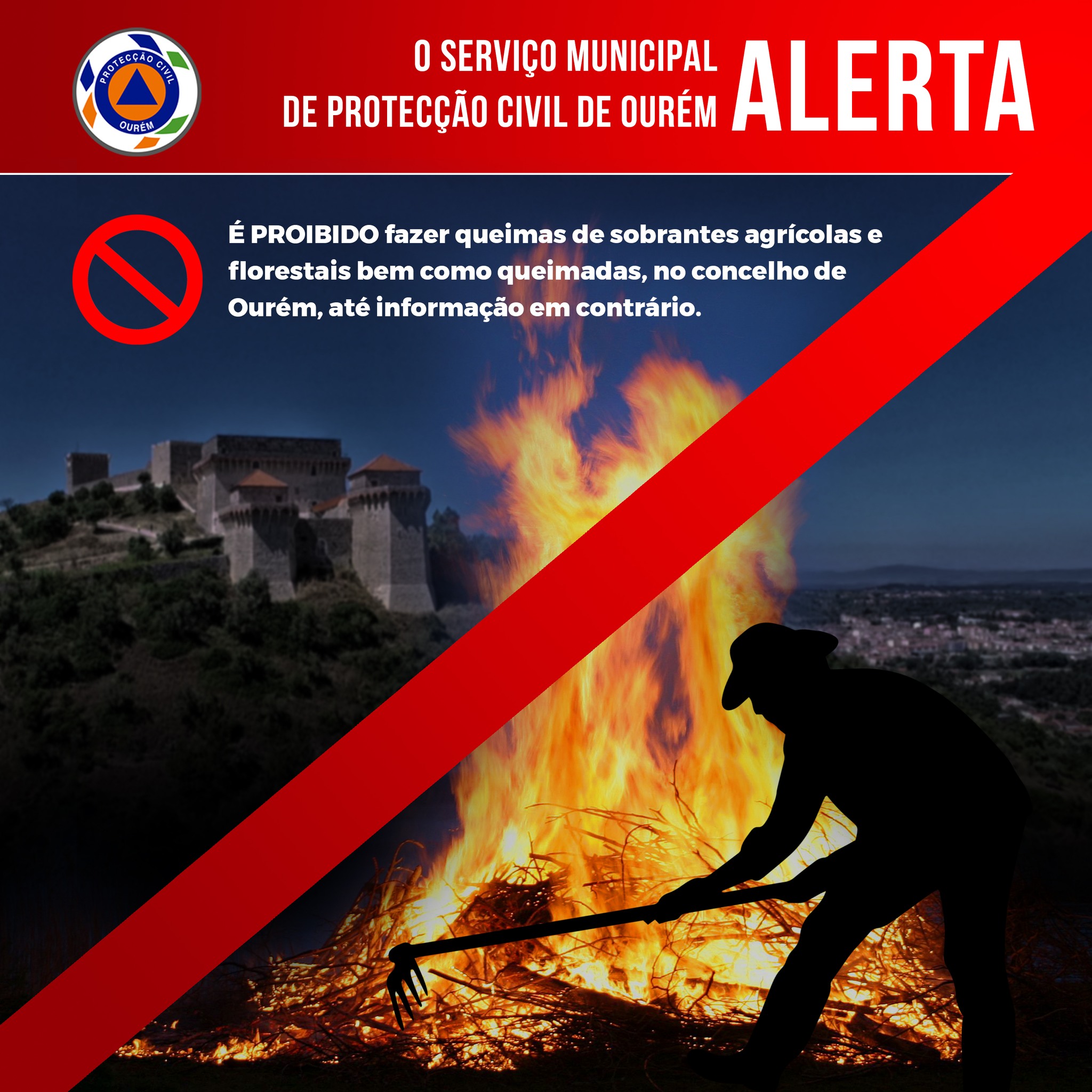Tendo em conta o agravamento das condições meteorológicas a partir do próximo dia 1 de Maio, as queimas de sobrantes agrícolas e florestais, bem como queimadas, encontram-se proibidas a partir do dia 01 de Maio de 2023 no concelho de Ourém.
